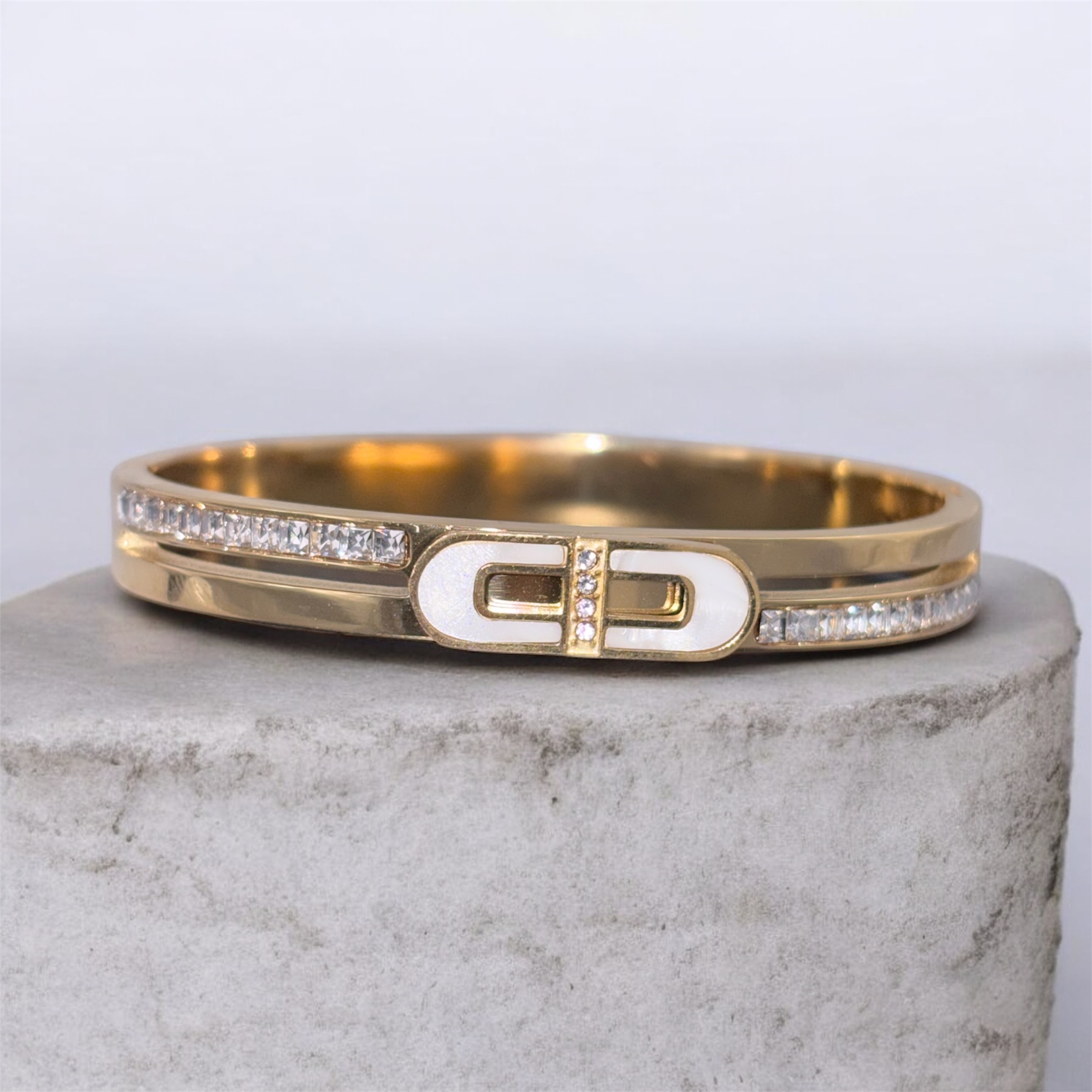Perfect for both everyday styling and special occasions, this bangle adds a touch of understated glamour whether worn alone or layered with other bracelets.