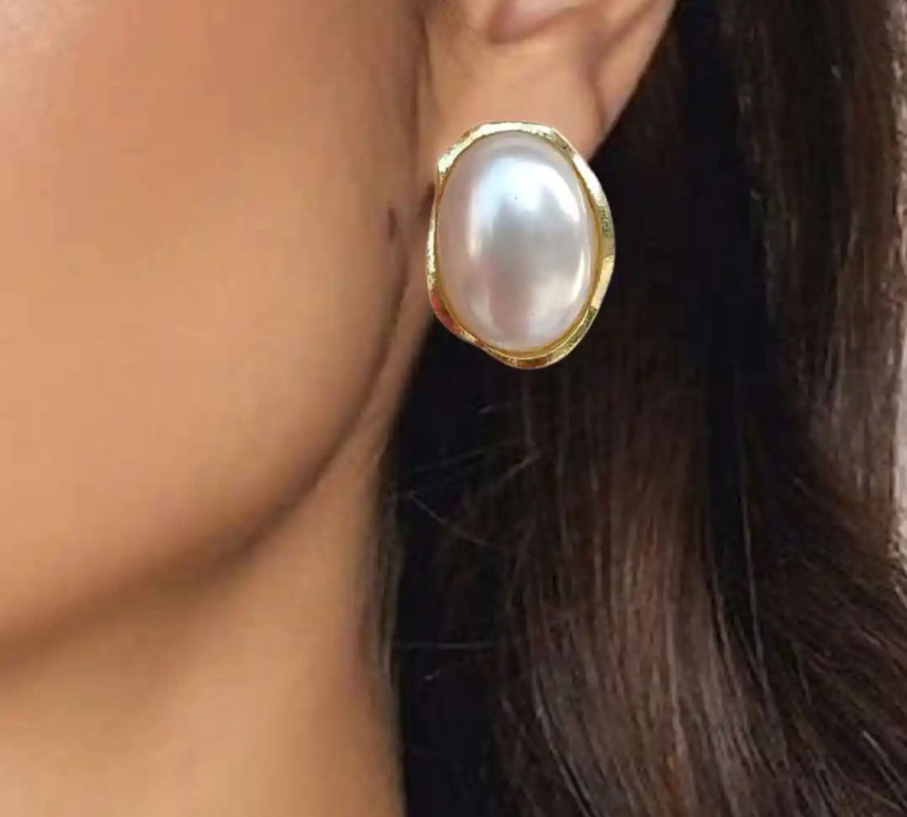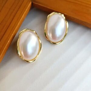Elevate your everyday elegance with these oval pearl stud earrings, framed in a sleek golden setting. Their timeless design combines the soft luster of pearls with a modern golden outline, making them versatile for both casual and formal looks. A perfect blend of sophistication and simplicity.