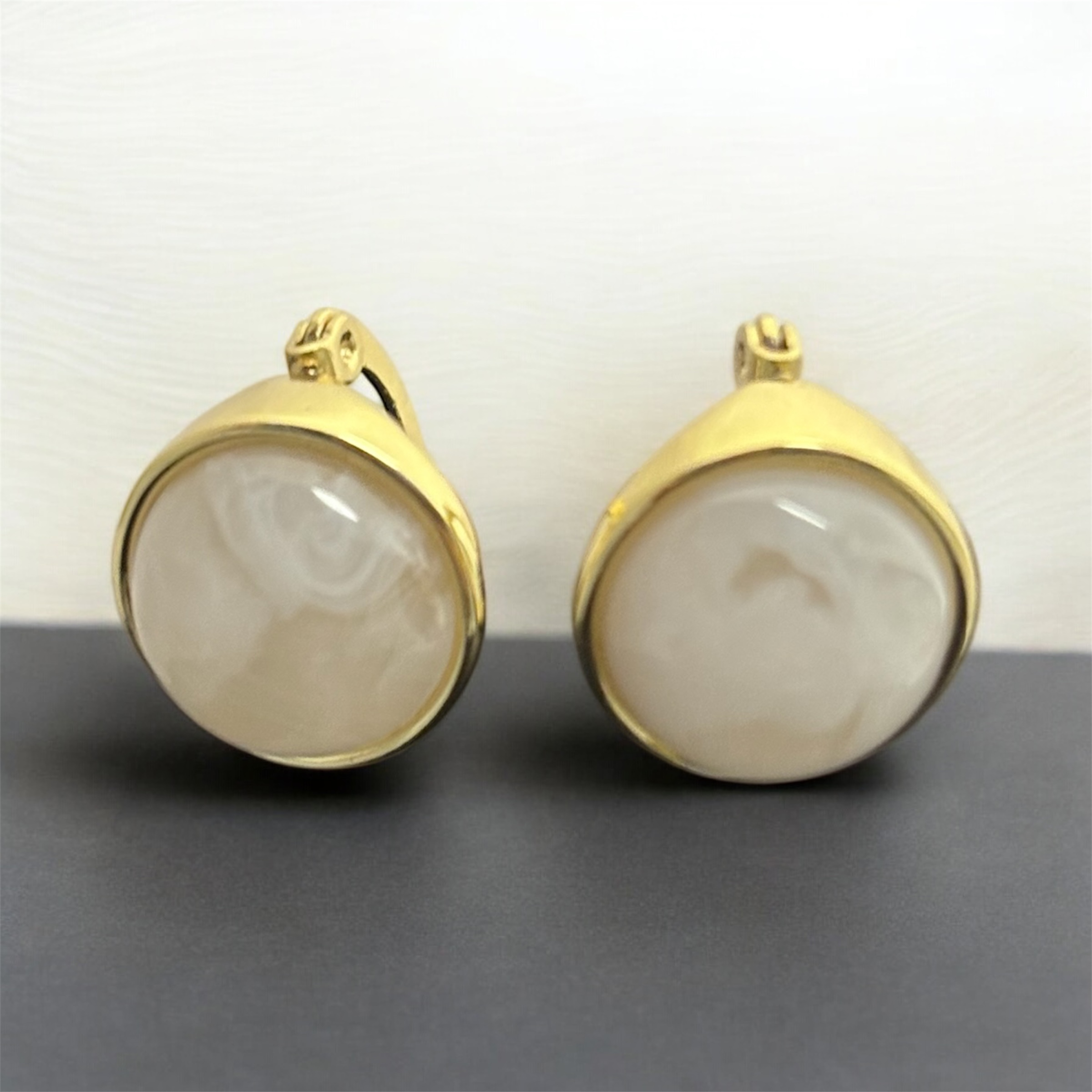 These refined stud earrings feature smooth, round natural stone centers set in a polished gold-tone bezel. The soft, creamy hues and subtle marbling of the stones make each pair unique, offering a timeless and understated look. Designed for everyday comfort and effortless style, these earrings add a touch of warmth and sophistication to both casual and formal outfits.